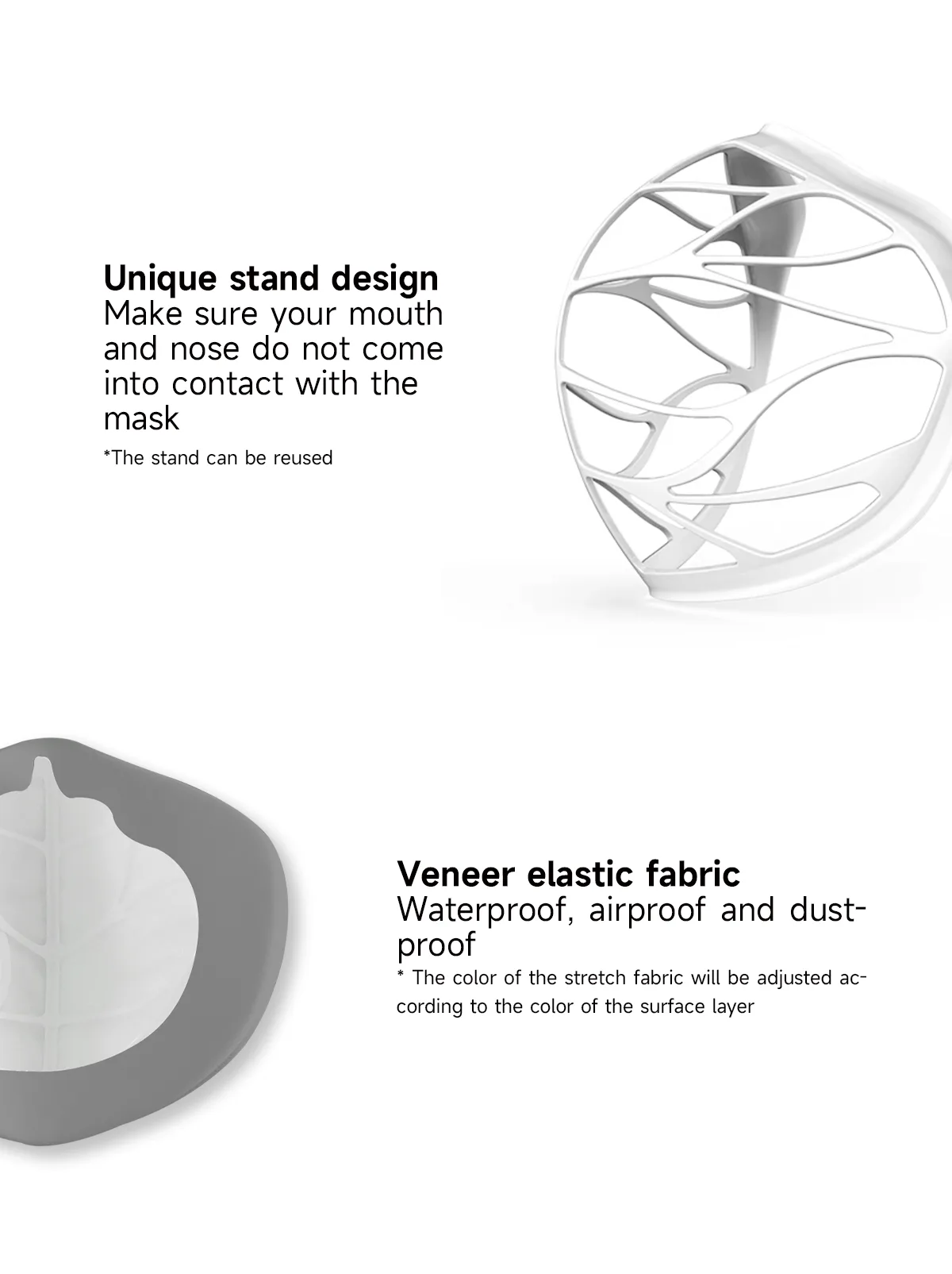 - Soft, stretchy material that comfortably conforms to the face